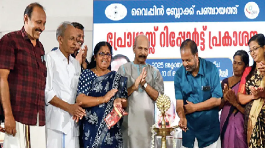 വൈപ്പിൻ ബ്ലോക്ക് പഞ്ചായത്തിന്റെ പ്രോഗ്രസ് റിപ്പോർട്ട് പ്രകാശിപ്പിക്കൽ കെ എൻ ഉണ്ണിക്കൃഷ്ണൻ എംഎൽഎ ഉദ്ഘാടനം ചെയ്തു. ബ്ലോക്ക് പ്രസിഡന്റ് തുളസി സോമൻ അധ്യക്ഷയായി. പ്രോഗ്രസ് റിപ്പോർട്ട് സിപ്പി പള്ളിപ്പുറം, കെ എൻ ഉണ്ണിക്കൃഷ്ണൻ എംഎൽഎക്കു നൽകി പ്രകാശിപ്പിച്ചു. ഡിജിറ്റൽ ഡോക്യുമെന്റ് ഡോ. കെ എസ് പുരുഷൻ പ്രകാശിപ്പിച്ചു. വികസനപത്രികയും പുറത്തിറക്കി. ജില്ലാ പഞ്ചായത്ത് അംഗം എം ബി ഷൈനി, ബ്ലോക്ക് വൈസ് പ്രസിഡന്റ് കെ എ സാജിത്ത്, പള്ളിപ്പുറം പഞ്ചായത്ത് പ്രസിഡന്റ് രമണി അജയൻ, കുഴുപ്പിള്ളി പഞ്ചായത്ത് പ്രസിഡന്റ് കെ എസ് നിബിൻ, ഞാറക്കൽ പഞ്ചായത്ത് പ്രസിഡന്റ് മിനി രാജു, ബ്ലോക്ക് അംഗങ്ങൾ, ഫാ. കുര്യാക്കോസ് മുണ്ടാടൻ, ബ്ലോക്ക് സെക്രട്ടറി ലോറൻസ് അന്റോണിയ അൽമേഡ എന്നിവർ സംസാരിച്ചു.